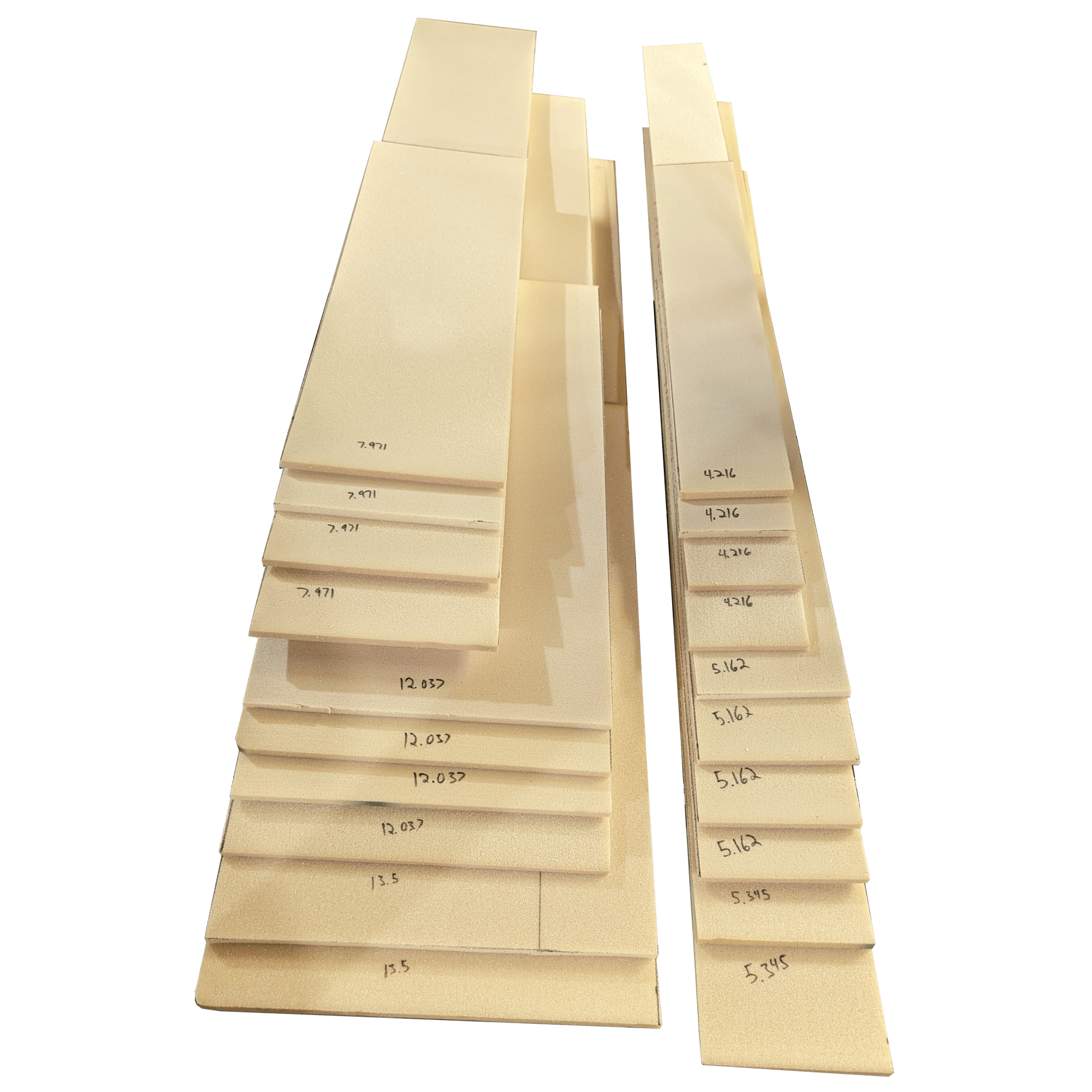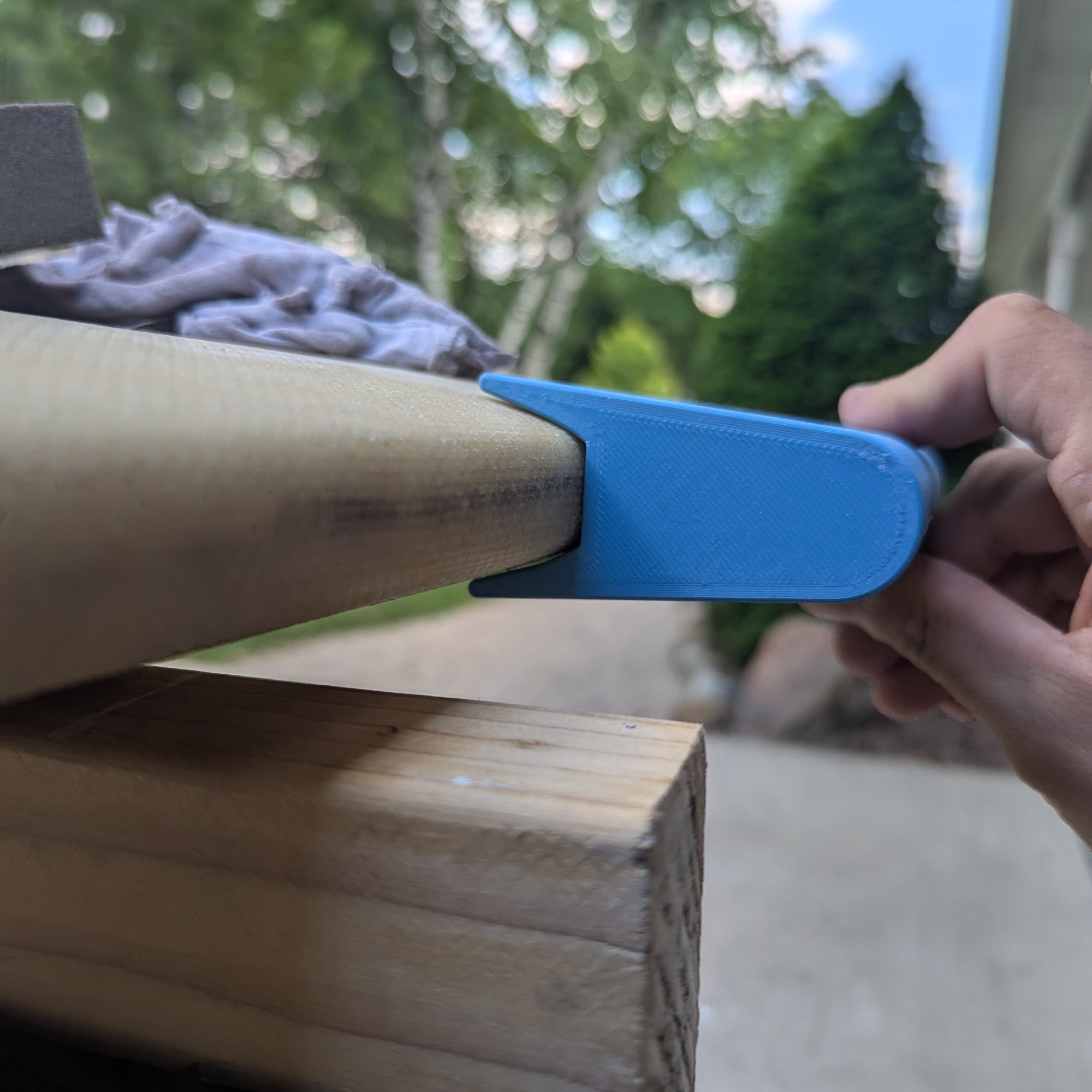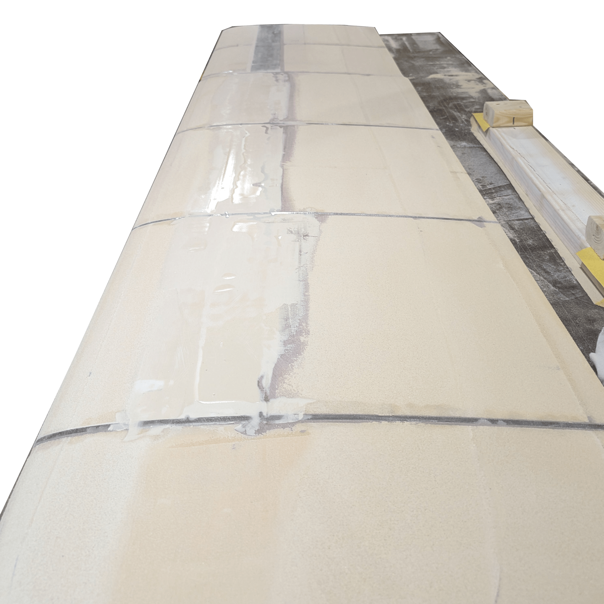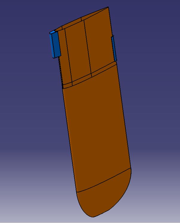 A NACA 0012 profile was selected for the foil. The top 24″ of the board that never exits the trunk under the boat is flat on each side of the beam and square at the leading and trailing edge. These flat surfaces exist to make it easier to mount plastic sliders to the daggerboard. Only the sliders contact the trunk. The bottom 12″ tip is shaped by hand between the lowest rib and the end.